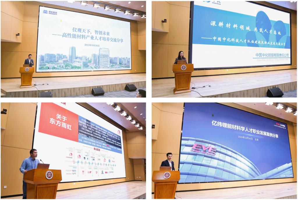 26日下午举办的青年学生职业发展对话聚焦材料领域人才多元化发展路径,邀请国机仪器仪表集团、中国中化、东方雨虹、亿纬锂能、京东方等企业代表,分享行业趋势、人才需求与培养体系,助力青年学生拓展职业视野。