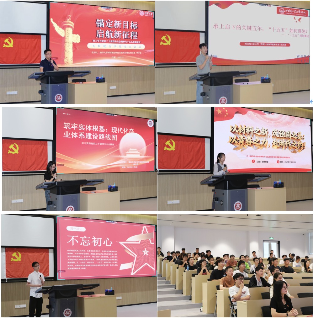 深圳研究生院,共同举办“五校联学,材担使命——深圳大学城五校材料学院四中全会精神深度研习会”主题联学活动。此次跨校联学活动深化了材料学科青年学子对二十届四中全会精神的理解,构建了校际党建交流平台,取得了良好成效。