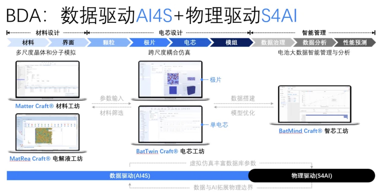 如何翻越这三座大山?郑家新团队借鉴半导体行业电子设计自动化(EDA)软件的成功经验,并结合AI for Science算法在电池领域的突破性实践,创新性地提出了BDA这一新范式。