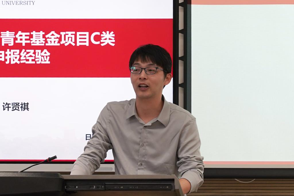 在经验分享环节,学院三位国家自然科学基金项目获得者作专题报告。王立刚助理教授结合面上项目申报经历,从数据分析、流程解析到撰写策略进行了全流程分享,重点阐述了如何在研究转向期,将既有研究积累与前沿探索方向有效融合,以构建坚实且富有创新性的论证体系。潘豪助理教授从“评审者视角”出发,系统剖析了项目评审流程与专家工作模式,强调申请材料需做到重点前置、逻辑外显,以实现项目研究目标和关键科学问题的精准、高效传达。许贤祺研究员以青年科学基金项目(C类)为例,聚焦申报书的具体撰写技巧,分别从文本规范、视觉呈现、逻辑架构与深度论证等角度分享了提升材料质量的实用方法。三位报告人的分享内容紧扣申报实际,为与会人员提供了多维度、可操作的指导。